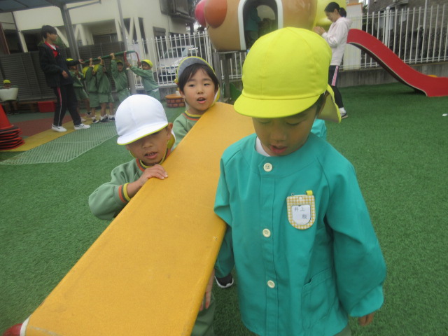 今日は、体育あそびの時間がすこーし短かった為、3周チャレンジ!「ピッピ、ファイト!」と元気な声が聞こえてきたよ~!