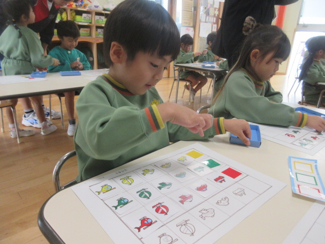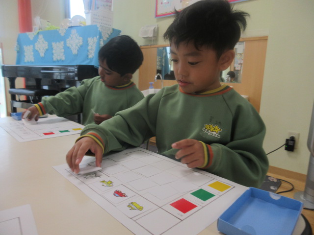 最後は、自分達でオリジナルゲームを考えたよ~!神経衰弱が多かったですが、「色があってたらOK!」、「かたちがあってたらOK!」「色だけではブブー」等、おともだちによってルールが違って面白い!と感じた担任です。