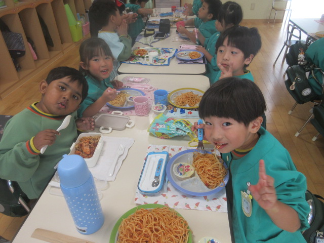 今日はおかわり給食「スパゲッティ」だったね~!容器がほとんど空になってしまうほど、食べていた菊組さんでした!