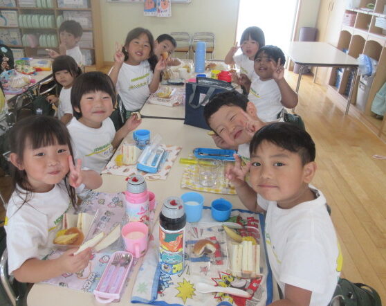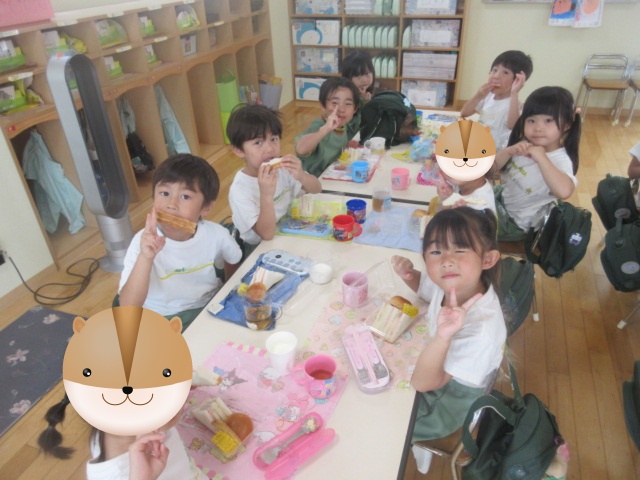 ご飯は、ミニ牧場のAグループとBグループに分かれて食べたよ~!(一緒に行く仲間💛同士で交流です)
