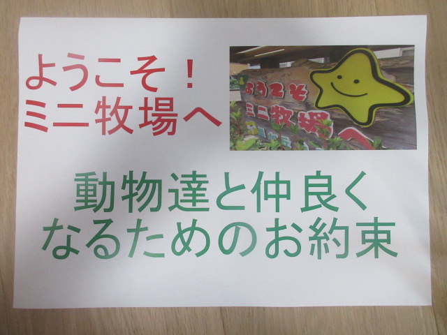 初めてのミニ牧場。どんな動物がいるかな!?どんな事に注意をすれば良いのかな!?のお話をしました。