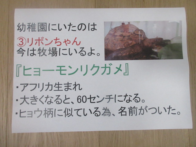 昔は、リボンちゃんは幼稚園にいましたが、今ではすっかり大きくなってミニ牧場で暮らしています。