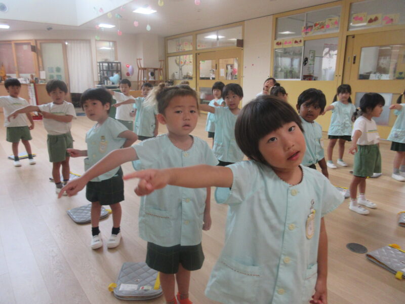 次は、みんなの番だよ~!足でリズムをとりながら、段々早くしてやってみよう!