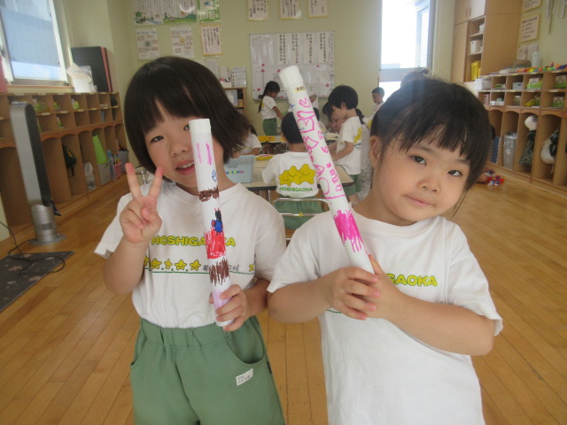 出来た~!素敵なスティックが完成したね!運動会で登場予定~!!