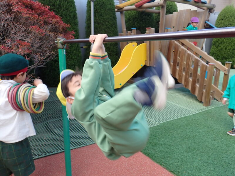 最近のブームは鉄棒★竜﨑先生に教えて頂いた、「前回り」や「足かけ回り」の他、「豚の丸焼き」にもチャレンジしているよ!