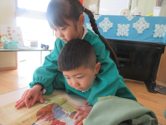 「去年、かぐや姫やった??」と聞くと、「やってたよ~!」と言っていた為、漢字絵本の指追いのお手伝いをお願いしました。