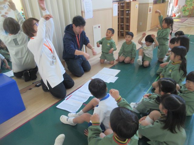投げる時は、顔の横から、両手を使って思いっきり投げよう!竜﨑先生からは、「ボールを沢山投げたり、キャッチしたりすると、どんどん上手になりますよ!」とお話を頂きました!外遊びの時にも、沢山ボールに触れようね~!