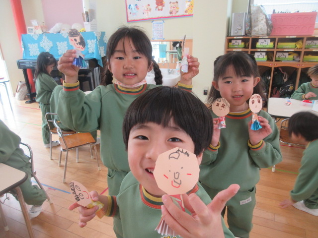 もうすぐ「ひな祭り」ですね!発表会前から、コツコツ!作っていた「雛人形」。今日は、身体の部分、着物の部分、顔の部分の貼り付けまで行いました!明日は、冠や尺をつけていこうね!