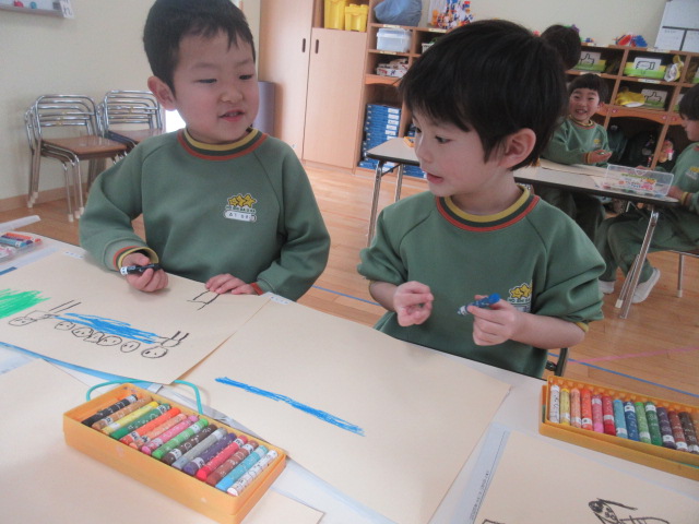 今日の菊組さんは、久しぶりに、幼稚園に来たおともだちもおり、「会いたかったよ~!」と再会を喜び合うおともだちの姿が見られました!(*’ω’*)