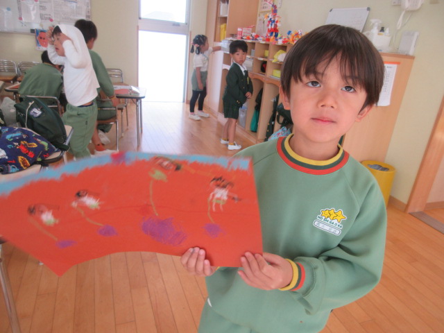 「芋掘り」でも、「科学館」でも、楽しかった事を描いてね~と伝えると、ほとんどのおともだちが、「芋掘り」を描いていました!