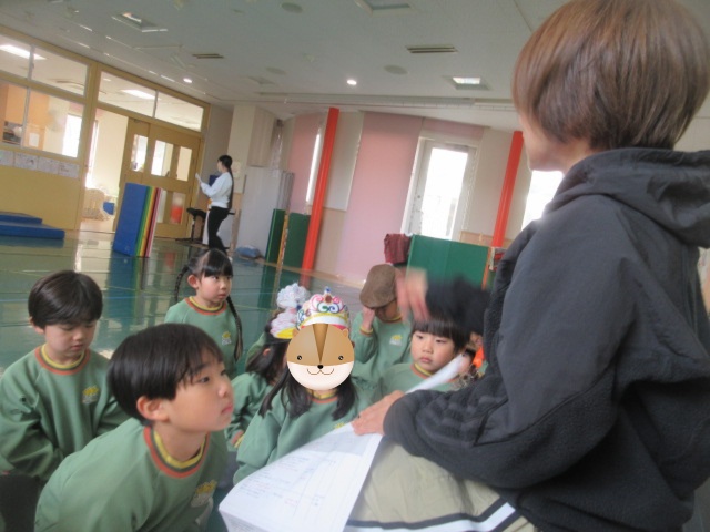 園長先生からは、「ただ寝ているだけに見える…」との事だった為、腕を伸ばしたり、強風に耐える動きは何だろう?と、おともだちと一緒に創りあげています。残りの取り組みもあと5回。最後のシーン+細かい動きやタイミング等も松下先生からお話を頂きました!ラストスパート、頑張っていこうね~~!!