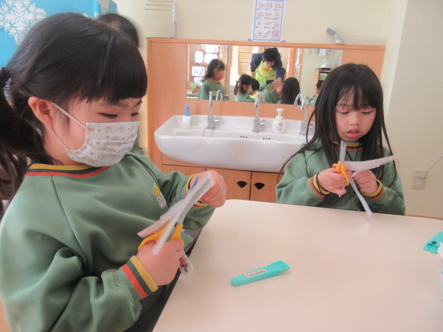 鋏でチョキチョキ…とお兄さんお姉さんの全身の写真を切りました!身体が切れない様に気を付けながら、丁寧に~丁寧に~。