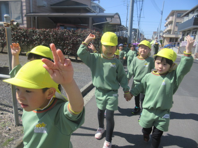 菫組さんと一緒に、OKの方まで歩き、星が丘小学校までぐるっと歩きました!明日はお別れ遠足!!転ばない様に、博物館まで行こう!!