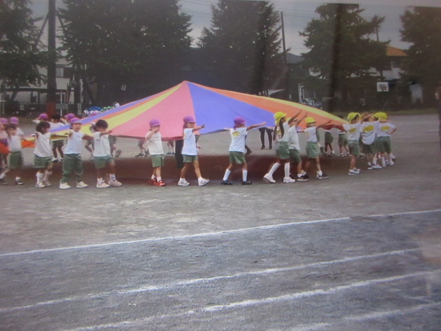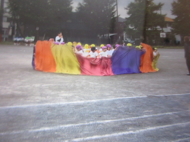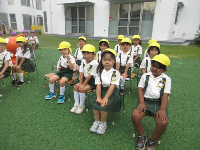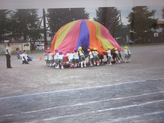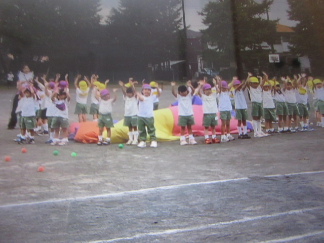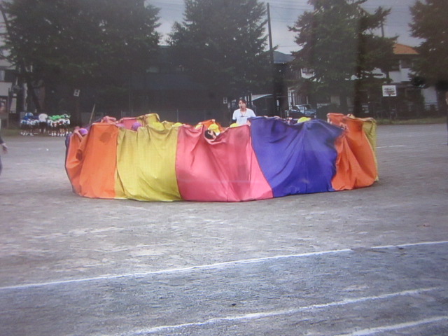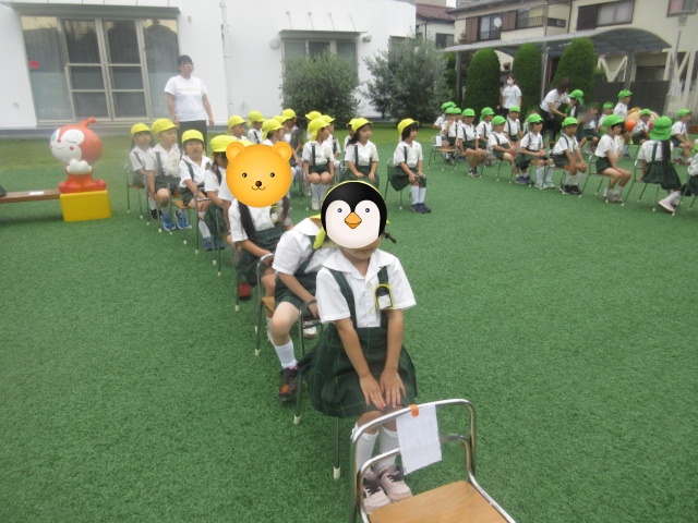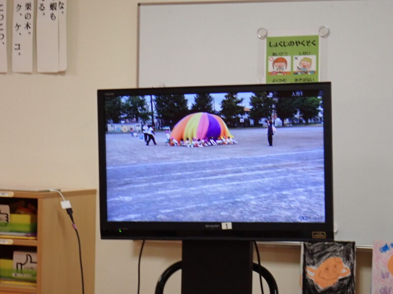 園庭では、色々な先生方が、航空写真の椅子の準備をしてくださっており、それを教室から見学!