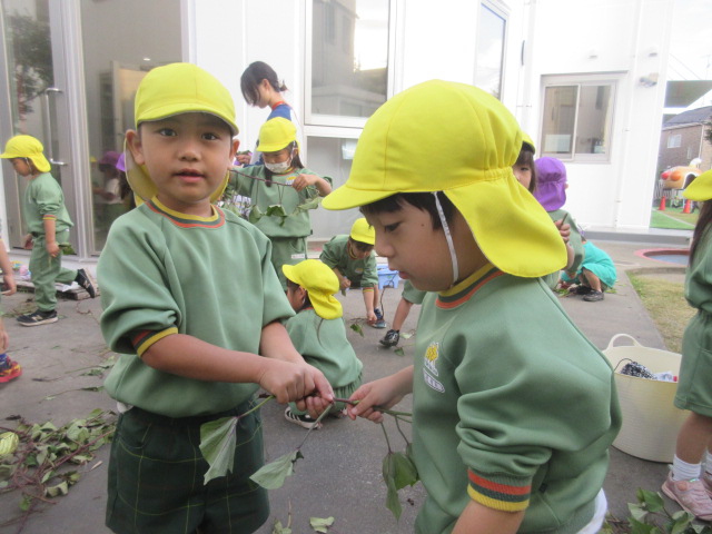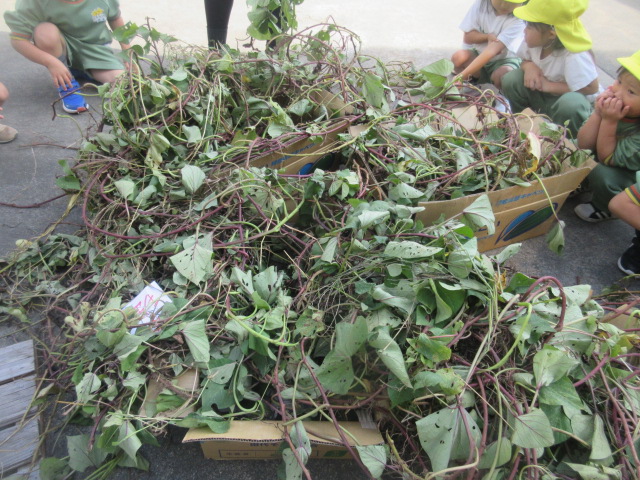 今日は、年少組さんの「芋掘り」遠足でした!リースを作る為に、サツマイモのつるを沢山持って帰って下さりました!