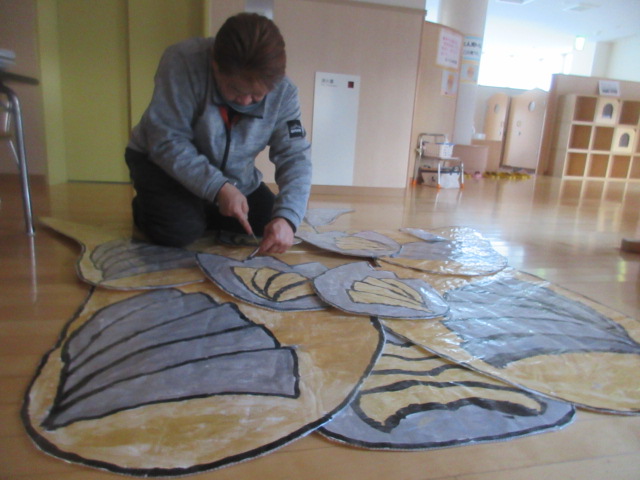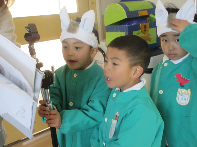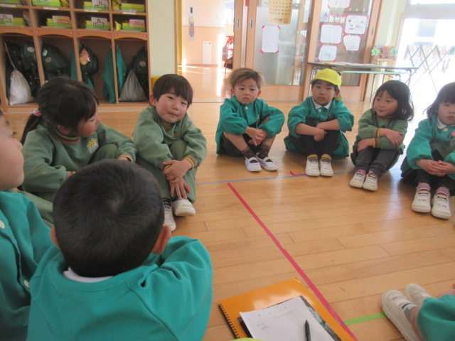 入って下さった友美先生からは、「途中で菊組さんに戻らない事」、「移動の時に、バタバタせずにスタンバイが出来るといいね!」とお話頂きました。又、担任からは、「台詞は覚えてきているから、間違えてもいいから、自信を持って言ってみよう!」と伝えました!