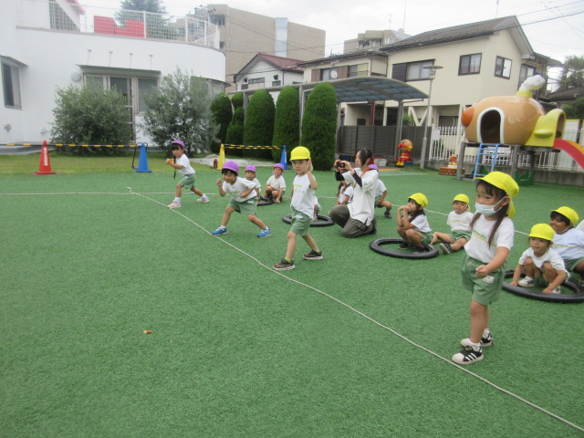 いよいよ運動会が目前に迫ってきました!思い返すと、「いちについて」、「よーい」で足が、前に来てしまったり…笑 パラバルーンがなかなか膨らまない、大玉が転がらない、籠に乗らない!等、色々な壁がありました。しかし、一つひとつ、毎日コツコツと取り組み、乗り越えてきた年中組のおともだち。
