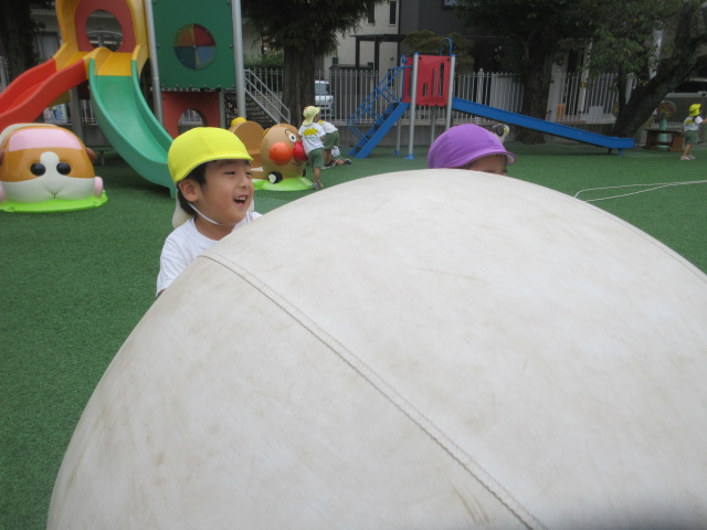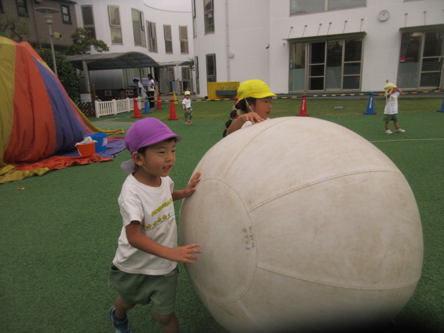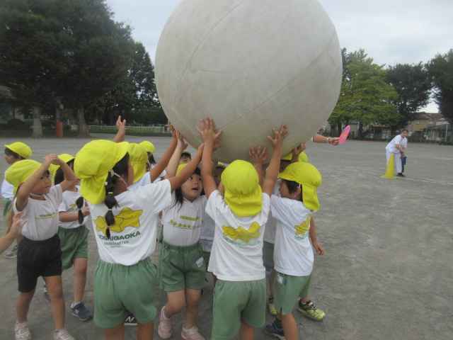 運動会前、最後の大玉転がし!!(明日は小学校で開閉会式の取り組みをしまーす!)