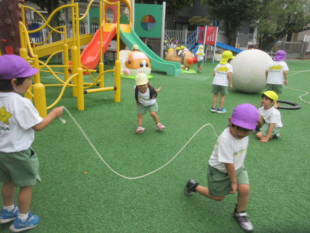 大玉がなかなか籠に乗らない…。→どうやったらうまく乗る!?→後ろに回って支えればいいんだ!掛け声は〇〇にしよう!等、沢山の道のりがありました。運動会当日は、そんなおともだちの素敵な!姿を見て頂けたら嬉しいです。沢山の拍手や声援を宜しくお願いいたします。