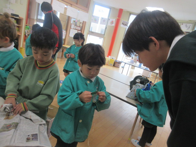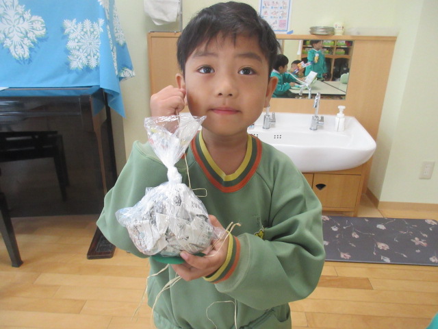 中学生のお兄さん先生の力も借りて、お芋が完成したよ~!明日、砂場に植えて掘り掘り~★ごっこをする予定です!