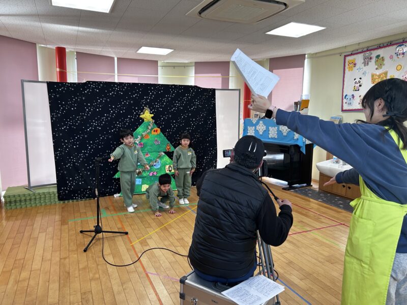 同じグループのお友だちと一緒に外遊びなどの時間を使いながら取り組んでいました。 朝もみんなで決め台詞を言い「OK。この調子で撮影も行こう!」