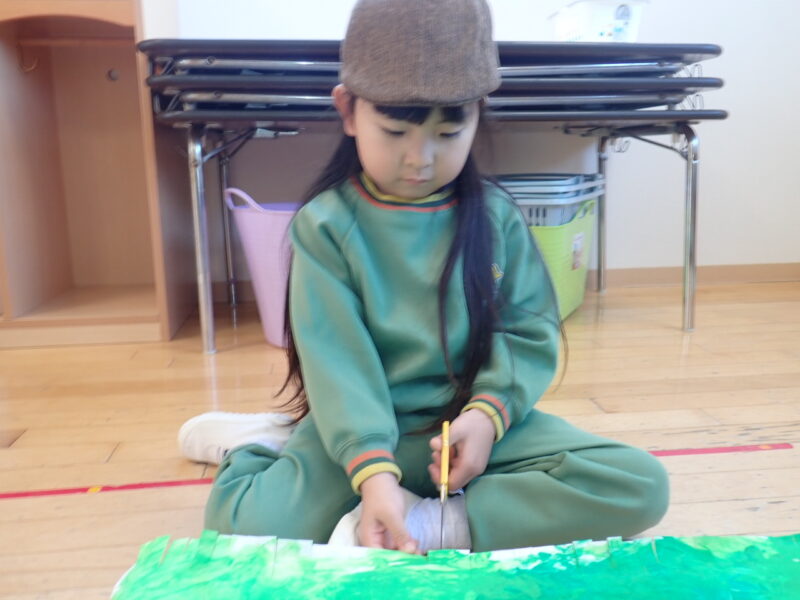 「ツリーの三角のした部分を切ったら、素敵になるかも。」という町田先生のアイデアで、朝からみんなで切っていきました✂・・・