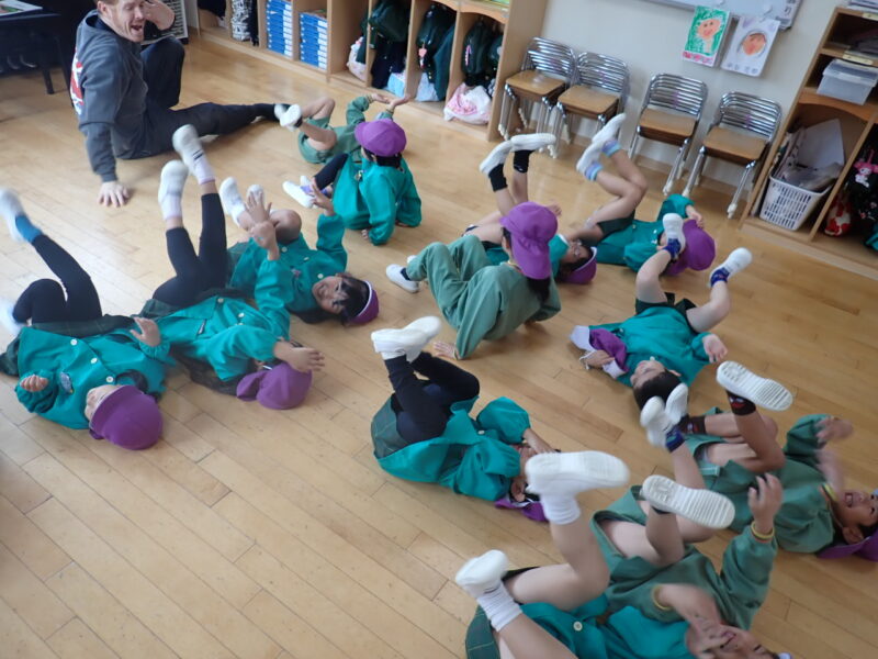 床に寝っ転がり「おぎゃーおぎゃー」と床でバタバタしまーす。
