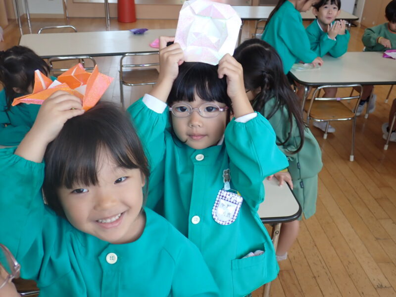 素敵な大きくてオーロラ色の折り紙を成田先生が用意してくださいました。