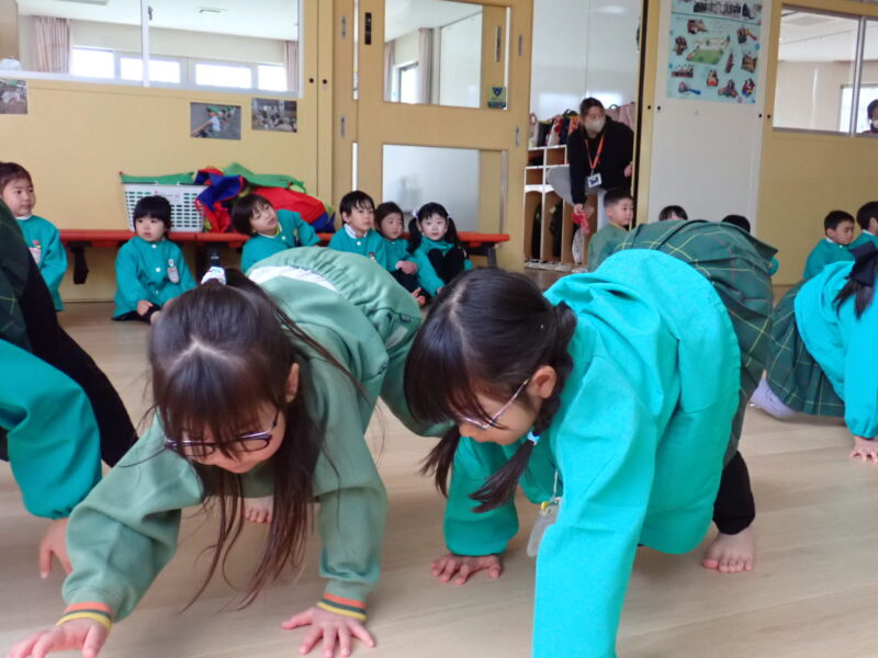 「くまさん、くまさん」年少さんとも一緒に♡「一緒にやろう」と声を掛けながら行っていました。