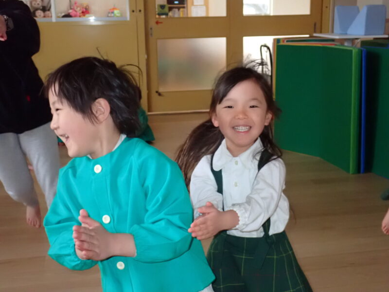 久しぶりのリズムあそびは、菊組さん、桜ぐみさん、苺組さん、と一緒に楽しみました。 ピアノは、山本先生が弾いてくださいました。ありがとうございます。
