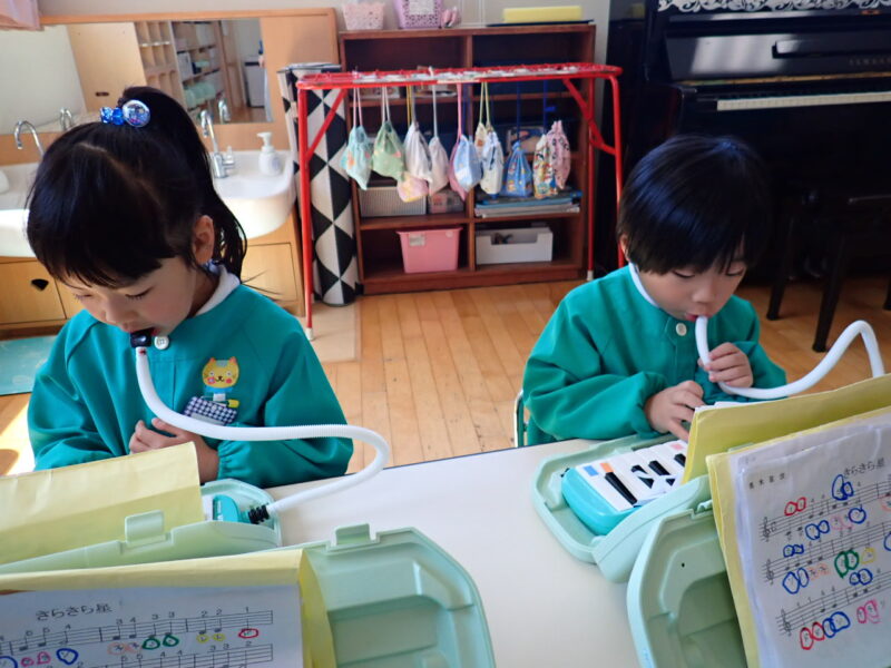 「年少さんでやった楽譜こんなに簡単だったんだね」とびっくりしていたおともだちでした。今までコツコツ取り組んできた事の成果が見られました。