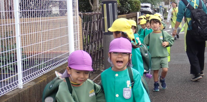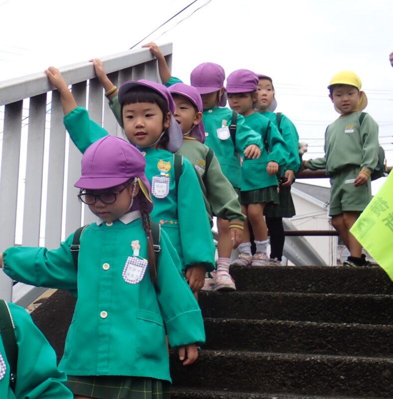 みんなが安全に歩けるように後ろのおともだちに、やまびこも大切です