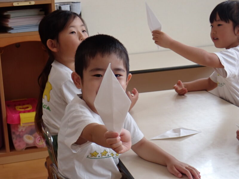 折り紙を行っていくことでお友だちに「伝える」という事も上達しています。