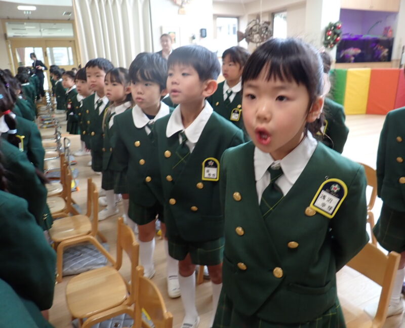 園歌を唄う姿は、式の成田先生に体を向けて綺麗な歌声を響かせられました。歌詞も毎日コツコツ取り組む事で、間違えずに唄える様になりました👏