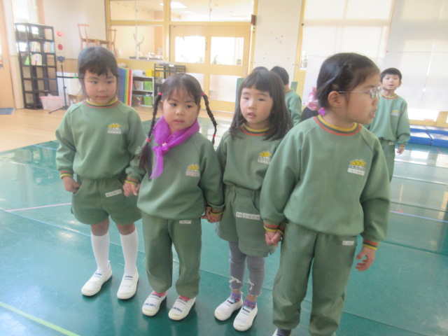 今日は、担任がピアノを弾いて、おともだちが動いてみました!普段は、前から、「●●だよ!」と伝えていましたが、いざ、なくなると難しい…!自分達で音をよく聞いて、台詞のタイミングや、次はここに動くぞ!という事が意識出来ていけると良いですね!