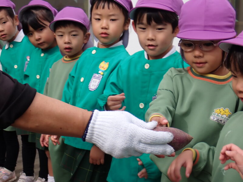 「これはみんなが遠足で頑張ってほりほりしたお芋」だと伝えると「え~そうなの!?」「こんなにいっぱいあったのか」とびっくり仰天していました。