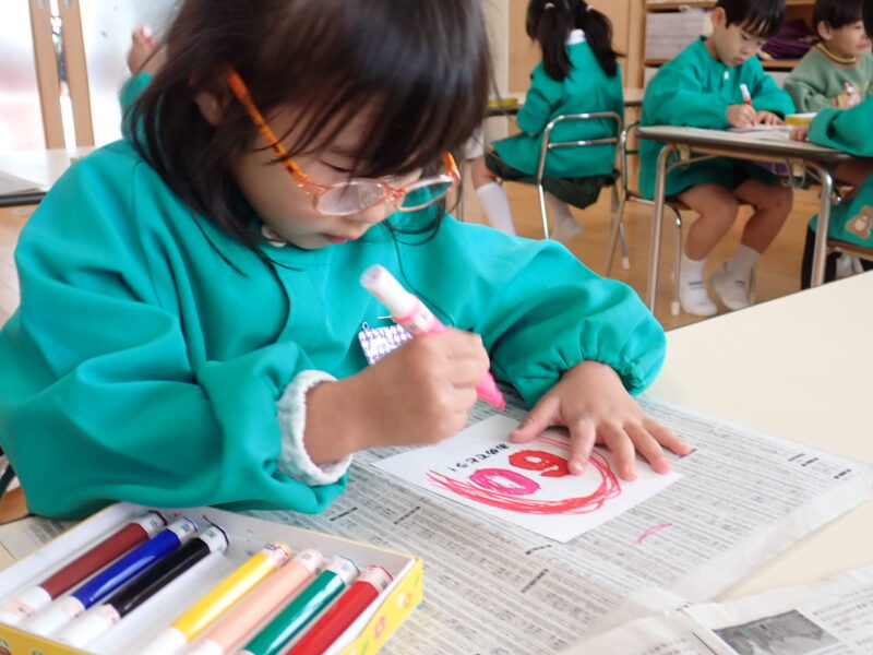 「すごい!!この色はどうかな」と実験も楽しみながらの色塗りでした。(ペンの色混ざっていないかな^^;)
