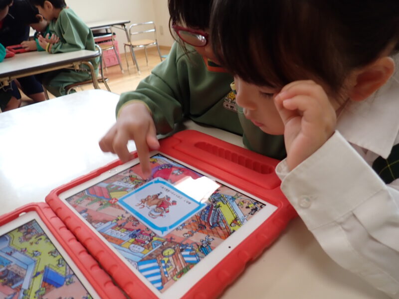 細かい絵の中で、どこにあるのかなと、お友だちと協力して行う事ができました。