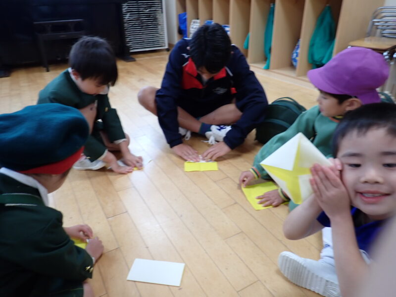 4分の1サイズの折り紙に挑戦してお友だちもいました。