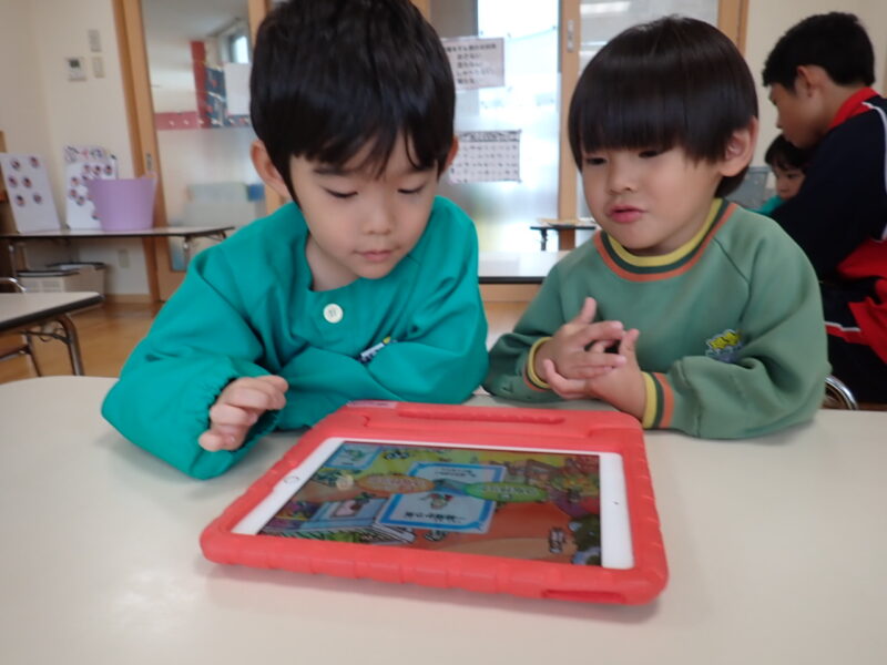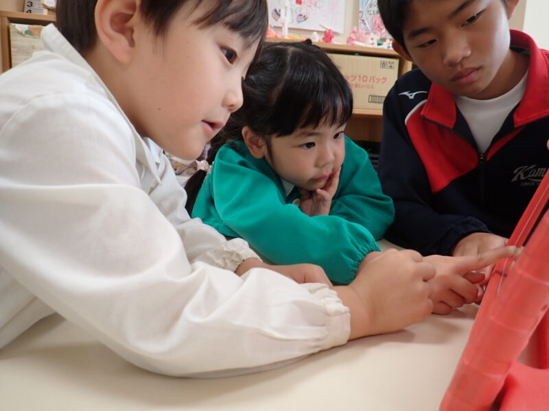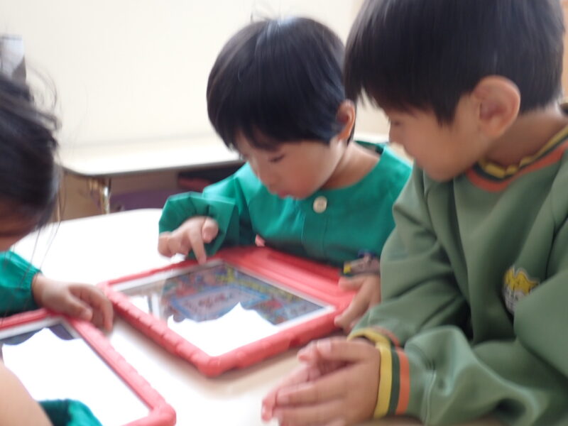 文字を読んで探すという事にも挑戦しながら、「なんて書いてあるの」とお友だちが読んだり、
