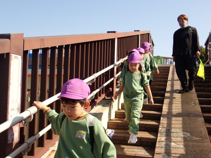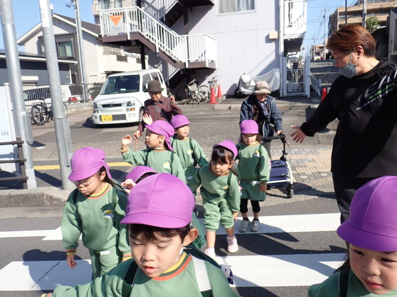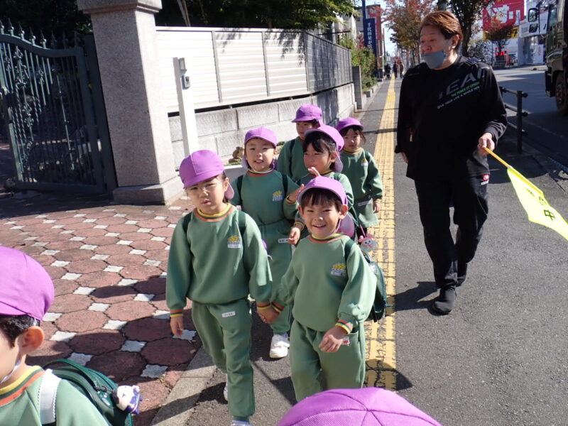 菊組さんと、菫組Bチームはお留守番で、みんなで園庭に出て「行ってらっしゃい」