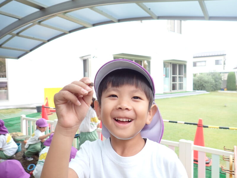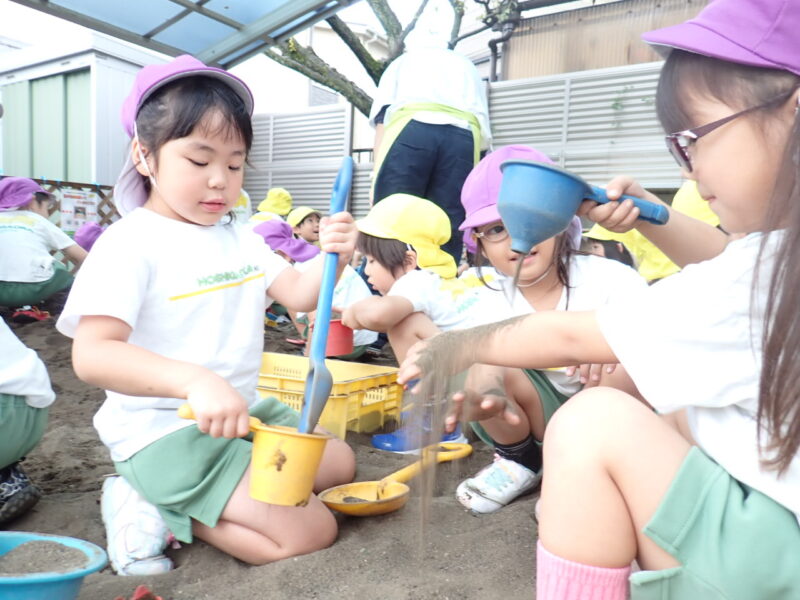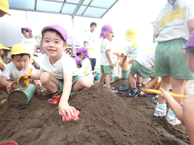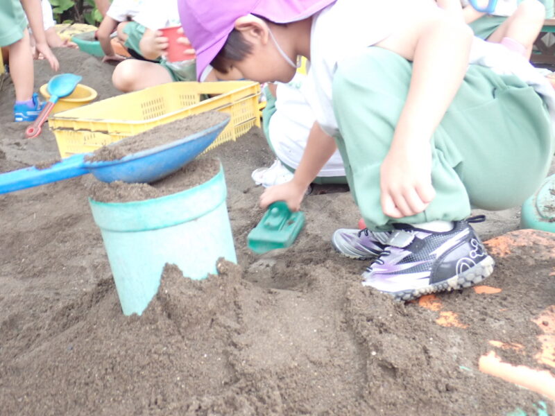 朝は雨が降っていましたが、屋根のある砂場で菊さんと一緒に楽しみました。