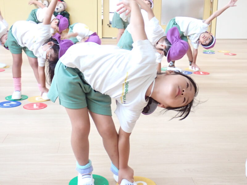 みんな体が柔らかくてゆうみ先生もびっくり!「すごいね」と褒めていただきました。