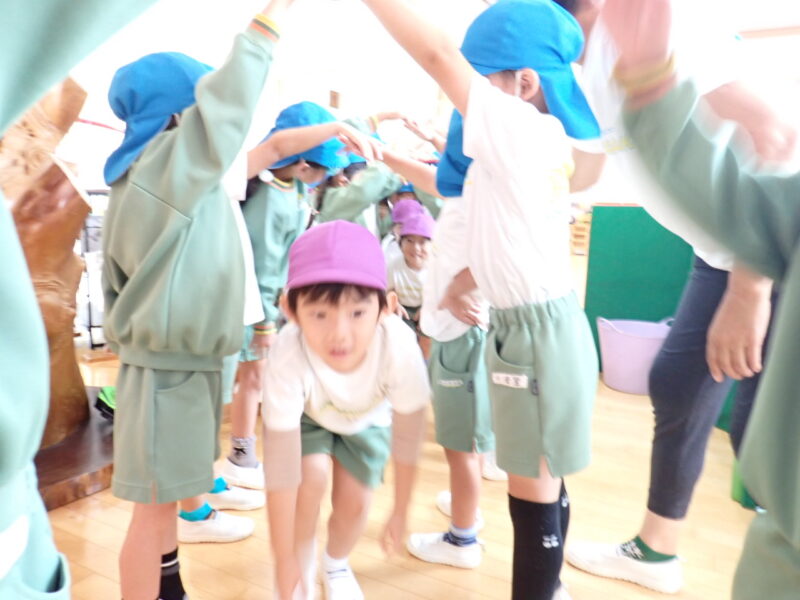 Aチームは水道になりきりステファン先生が頭の上をキュッキュッとねじったら手を振って水を出します。