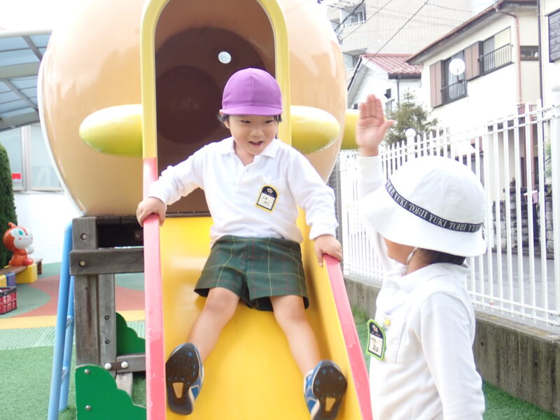 給食の後は、雨も上がり元気に外遊びです。