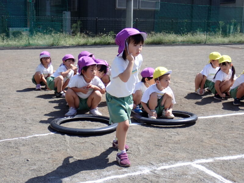 というお話をしていたら「じゃー年中さんが走っている時は、誰かに渡して応援お願いしなきゃ」と、