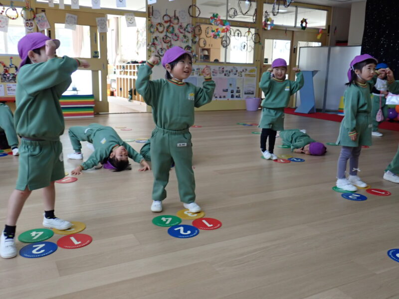 バラバラになり、先生の合図で元のFamilyの形へ戻るゲームです。