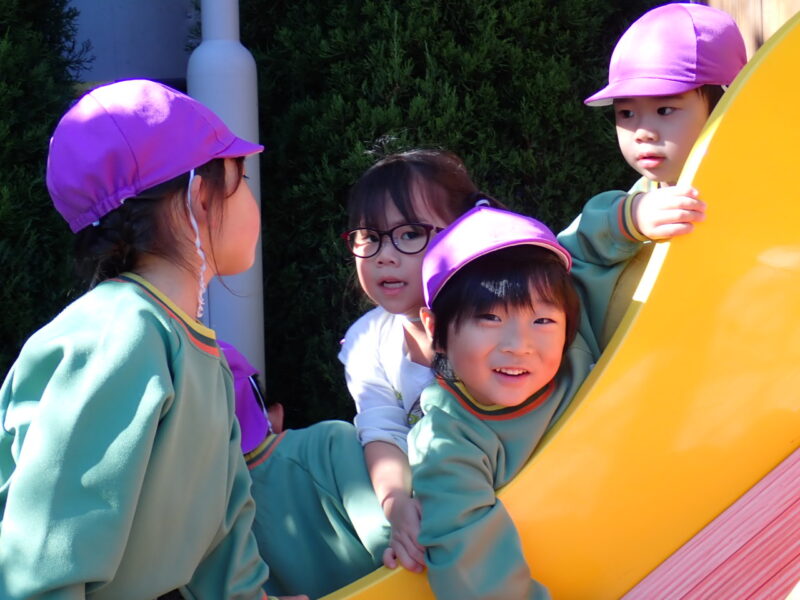 「あとひとりだよ!」「おいでおいで」と声を出しながら楽しんでいます。