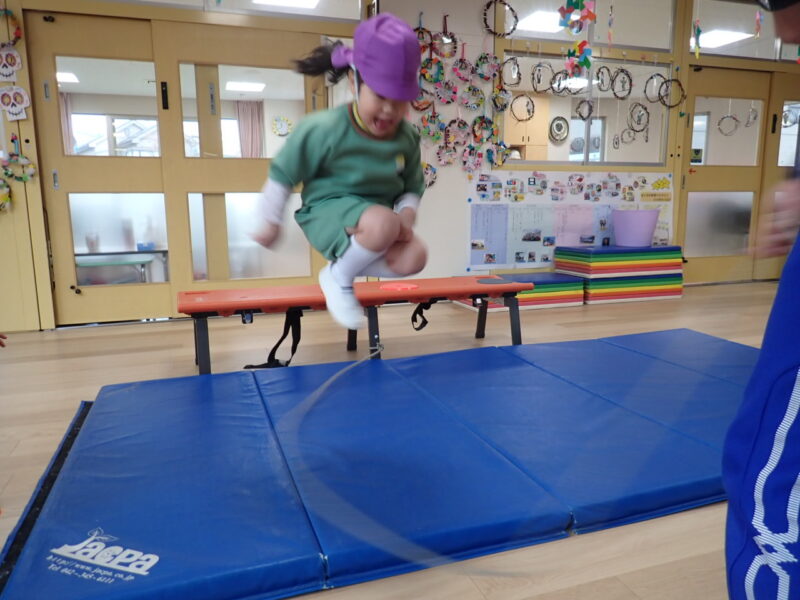 始めは「1回」と自信がなかったお友だちも沢山跳んでいくうちに「次は5回跳んでみたい」
