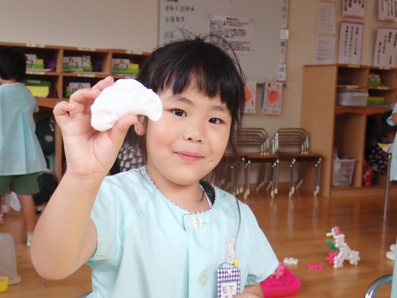 一緒に粘土をやっていたお友だち皆で餃子を作り、沢山お店が広がっていました。